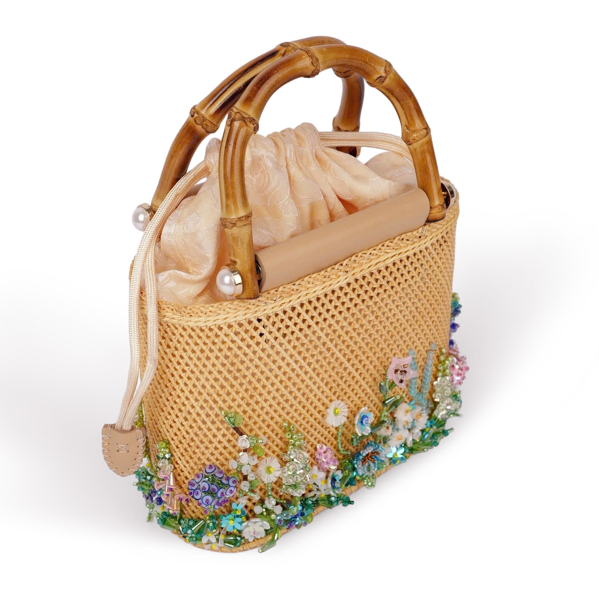 - 素材:ラタン、バンブーハンドル、本革、ビーズ、シルク裏地