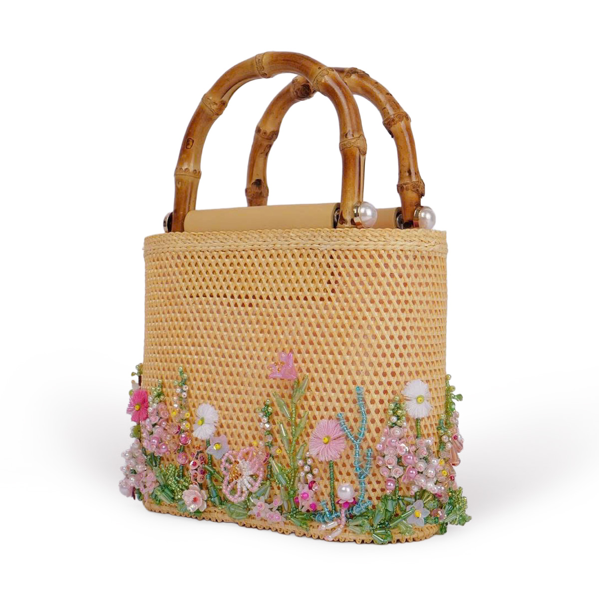 - 素材:ラタン、バンブーハンドル、本革、ビーズ、シルク裏地