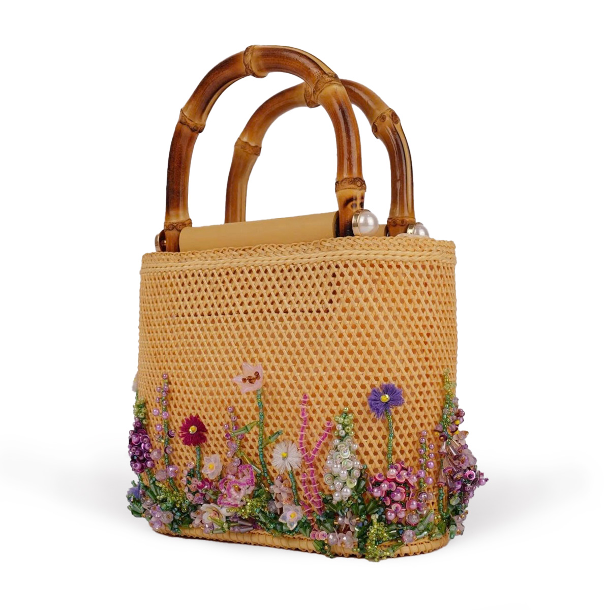 - 素材:ラタン、バンブーハンドル、本革、ビーズ、シルク裏地